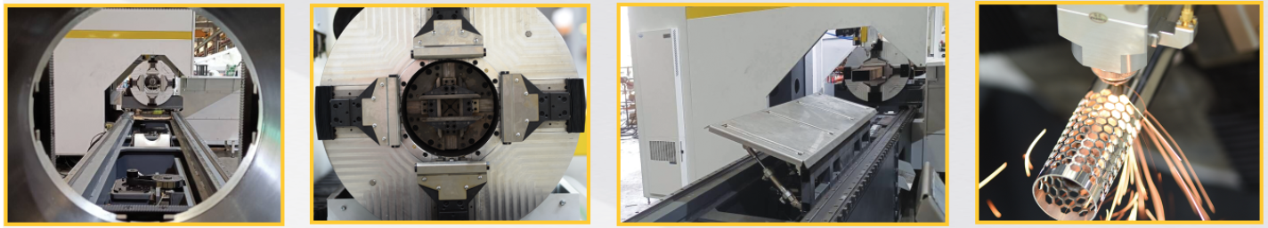 創新三卡盤零尾料切割:采用三卡盤設計,其中第三卡為拉料卡盤,三點夾持配合隨動支撐,確保送管穩定,防止長管彎曲,靈活夾持實現零尾料切割,